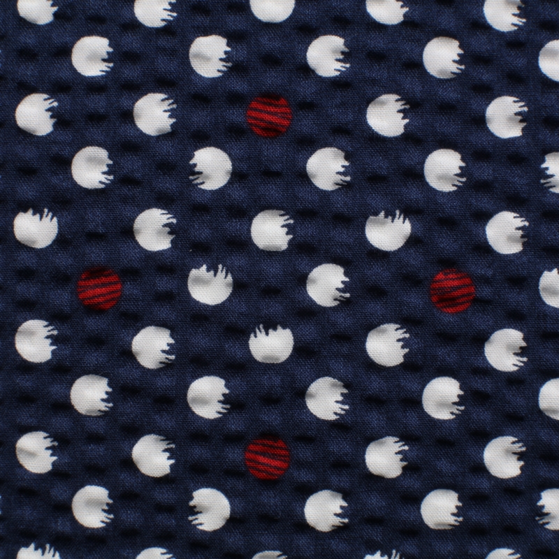 Articolo LONG BEACH PRINT: tessuto seersucker stampato, 80/1COm in trama ed ordito. Altezza utile 135cm.
